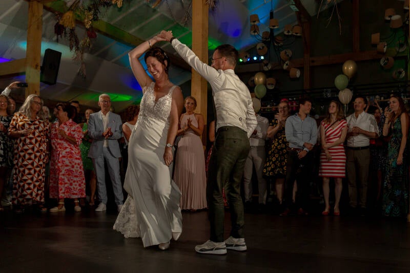 Toen Mandy & Nicky samen binnenkwamen, startten ze met een knalnummer een prachtige openingsdans. De DJ zette na de openingsdans meteen in met knallende nummers, en alle gasten gingen los op de dansvloer! Het was een en al plezier en iedereen danste erop los! De feestvreugde spatte ervan af en het werd een avond vol onvergetelijke herinneringen.
